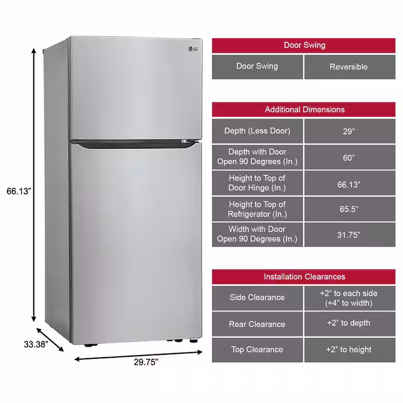 30 in. W 20 cu. ft. Top Freezer Refrigerator w/ Multi-Air Flow and Reversible Door in Stainless Steel,ENERGY STAR