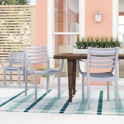Melissus Stacking Patio Dining Armchair Mercury Row Color: Silver Gray - Avayadevconnect