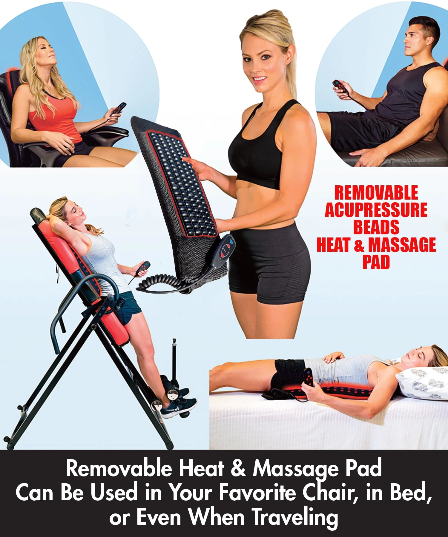Health Gear Acupressure Beads Heat and Vibration Massage Inversion Table, ABM 9200, Black, 300lb Weight Capacity