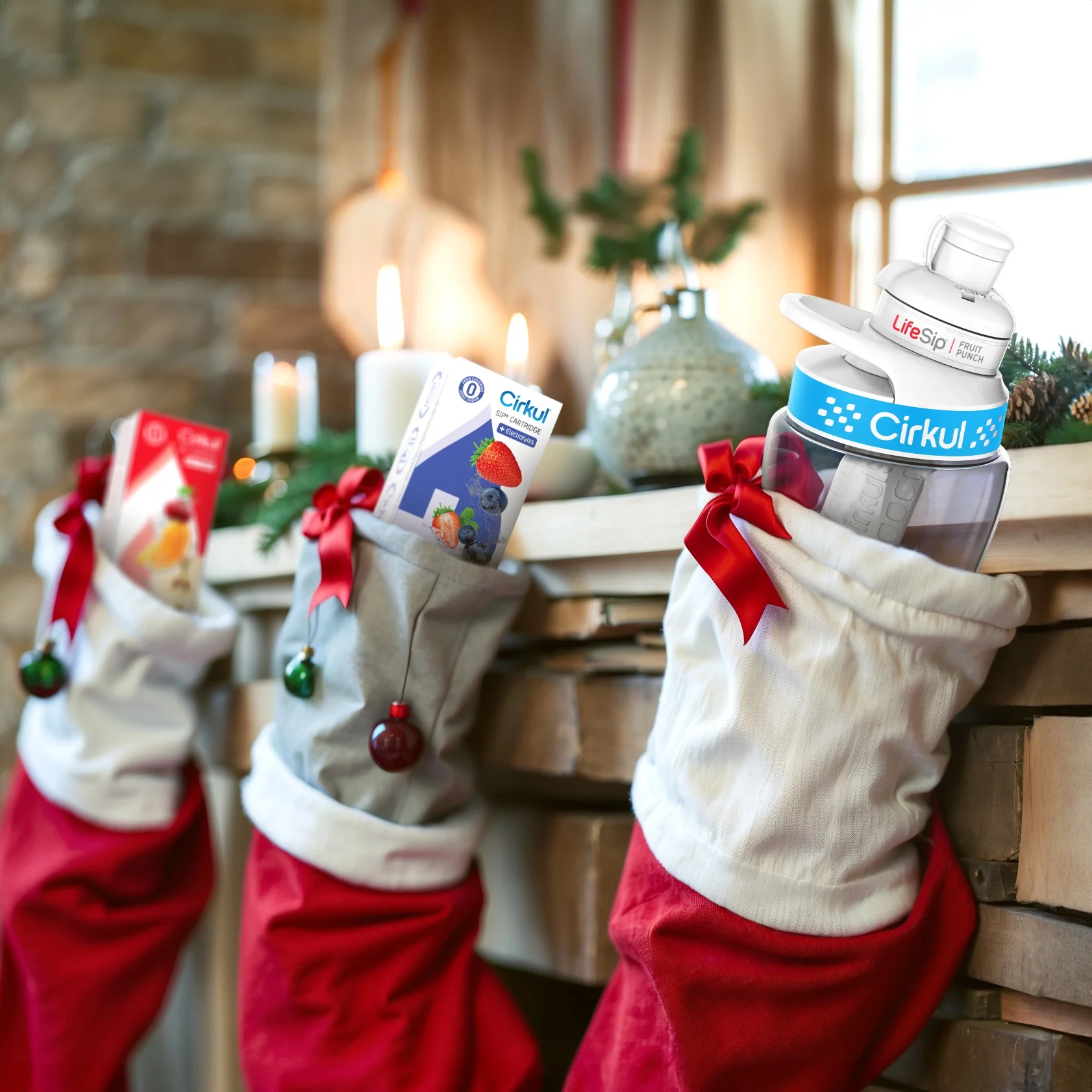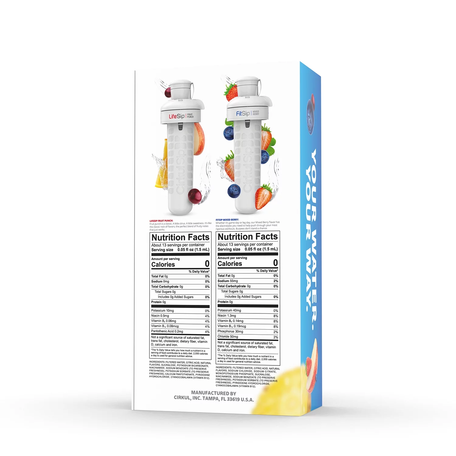 Cirkul 22oz Plastic Water Bottle Starter Kit with Blue Lid and 2 Flavor Cartridges (Fruit Punch & Mixed Berry)