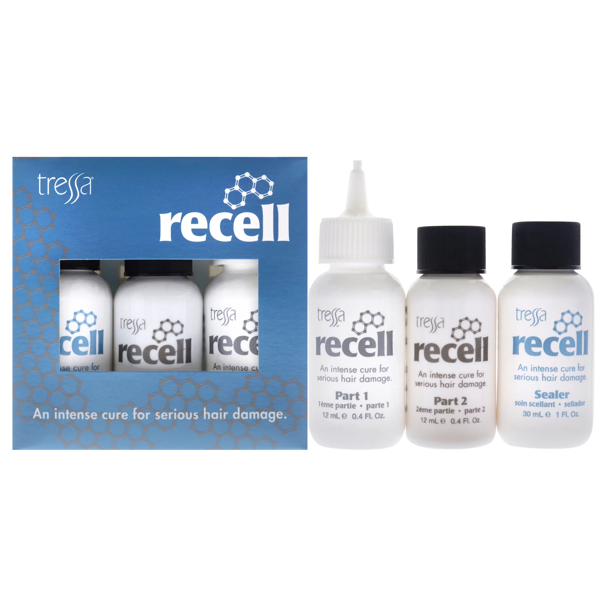Tressa Recell - Intense Reconstructor Hair Treatment Kit by Tressa for Unisex - 3 Pc 0.4oz Part 1 Hair Treatment, 0.4oz Part 2 Hair Treatment, 1oz Sealer