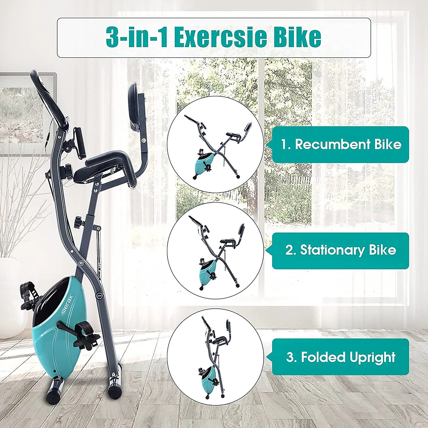 IM Beauty Folding Upright and Recumbent Foldable Stationary Bike Exercise Bike with 10-Level Adjustable Magnetic Resistance, Perfect Workout Bike for Home Use for Men, Women, and Seniors