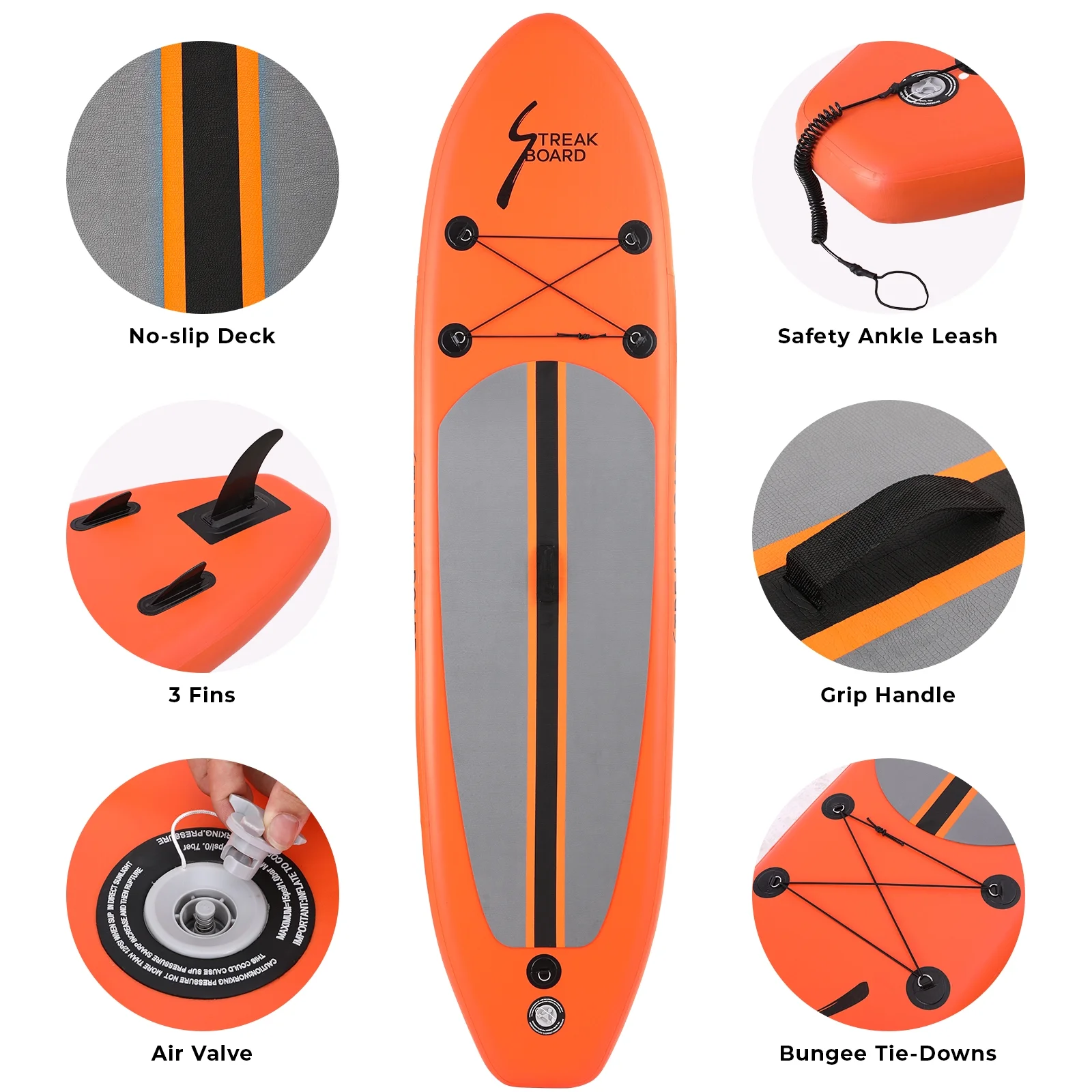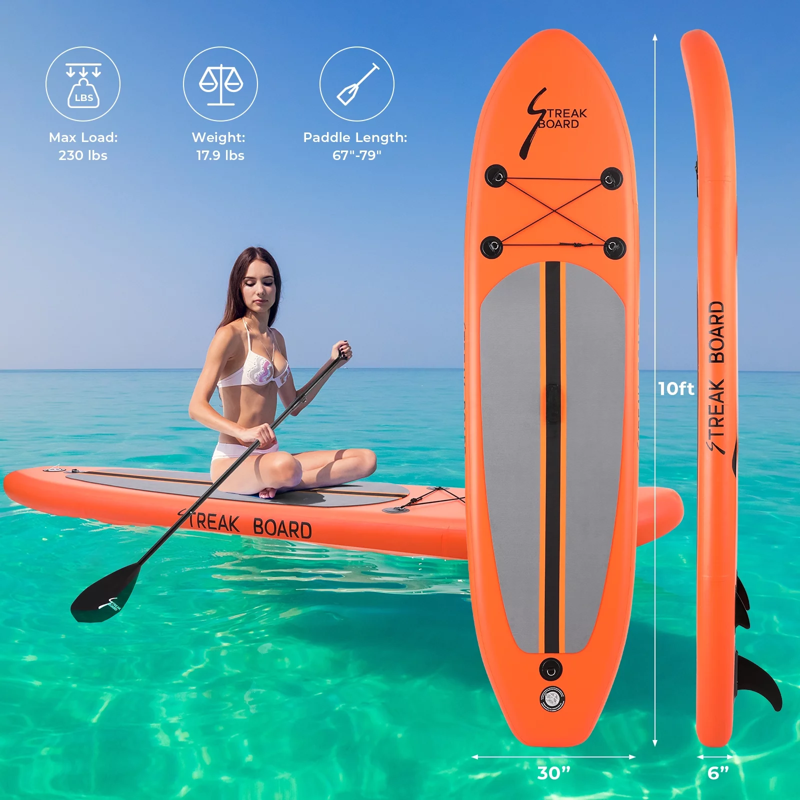 streakboard 10FT Inflatable Paddle Board Stand-up Paddle Board SUP 6'' Thick Board with Full Accessories, White