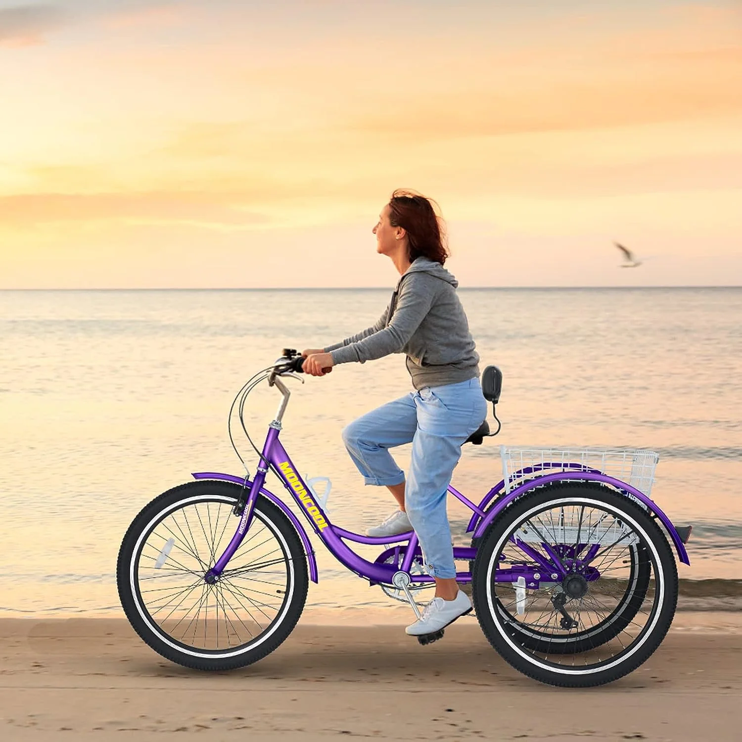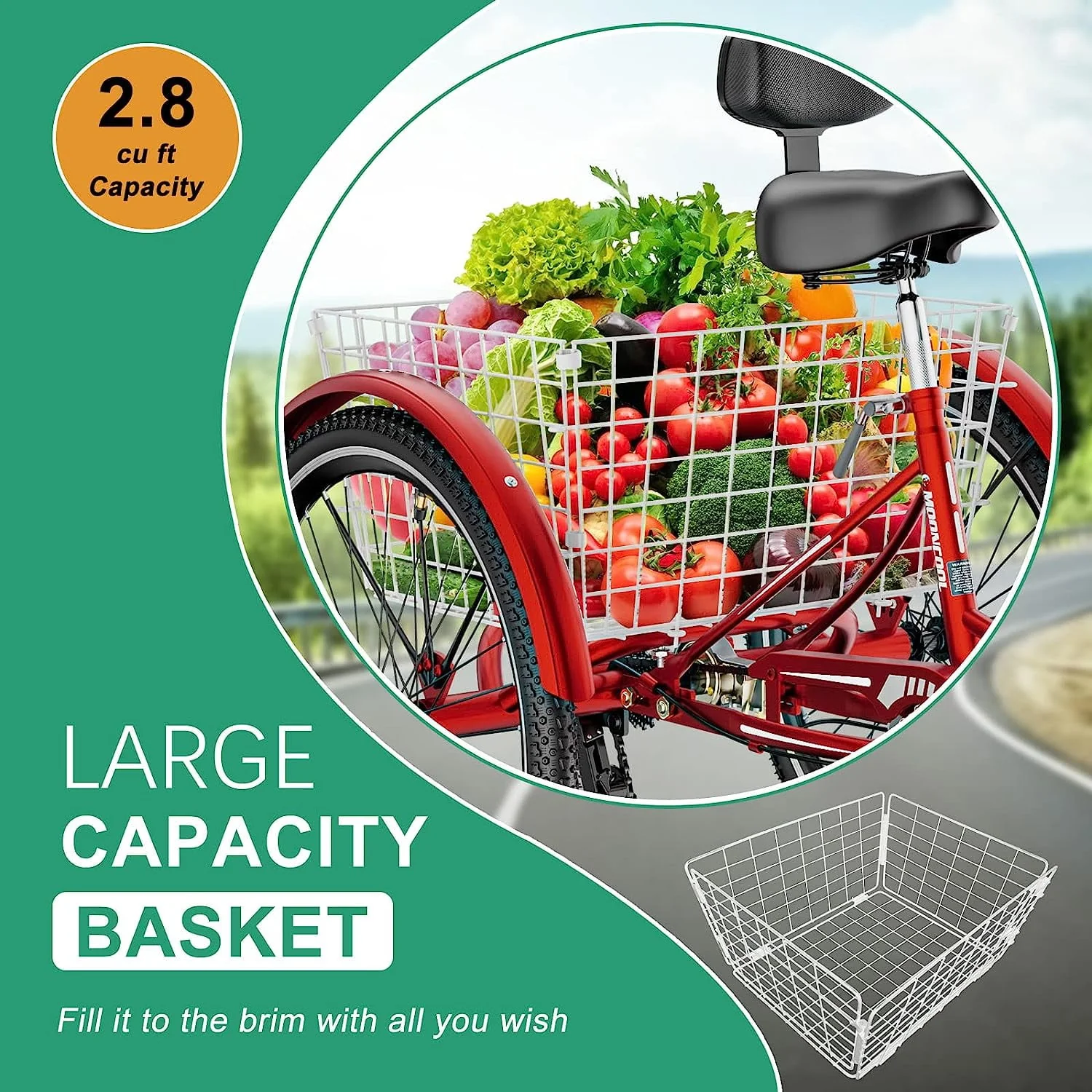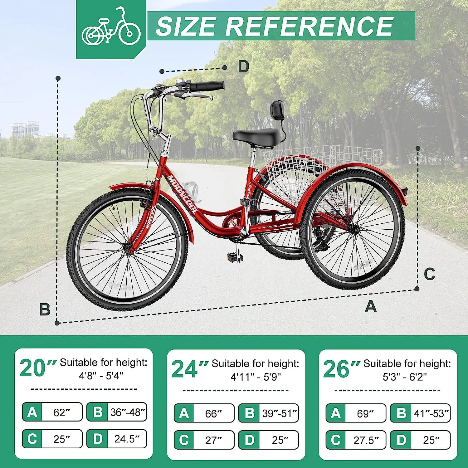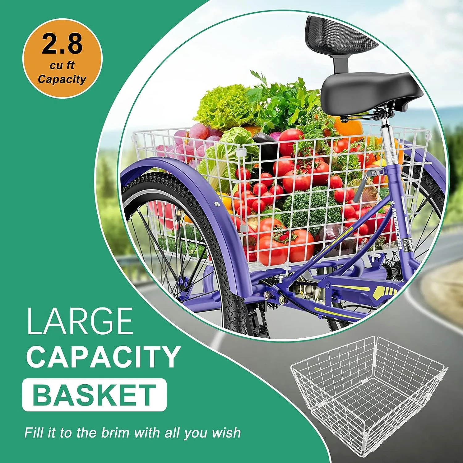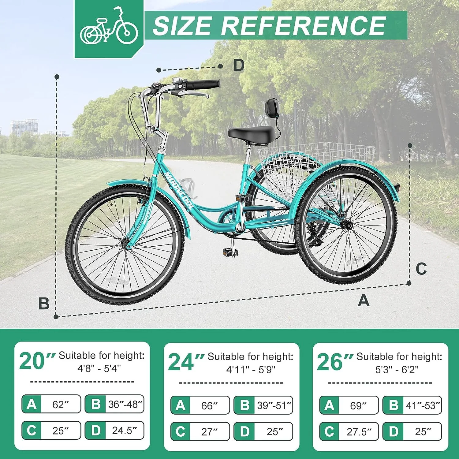 ABORON Adult Tricycles 7 Speed, Adult Trikes 24 inch 3 Wheel Bikes, Three-Wheeled Bicycles Cruise Trike with Shopping Basket for Seniors, Women, Men