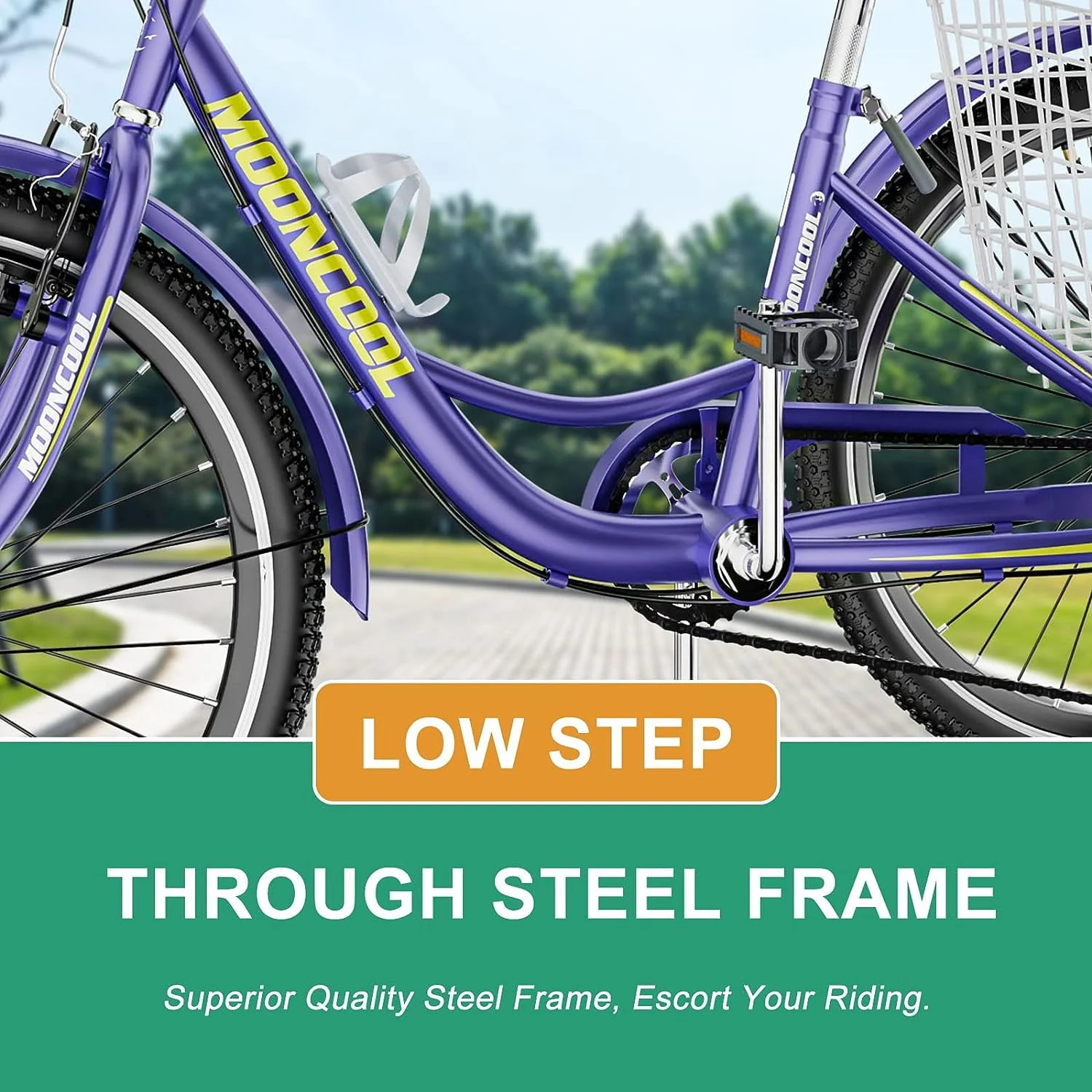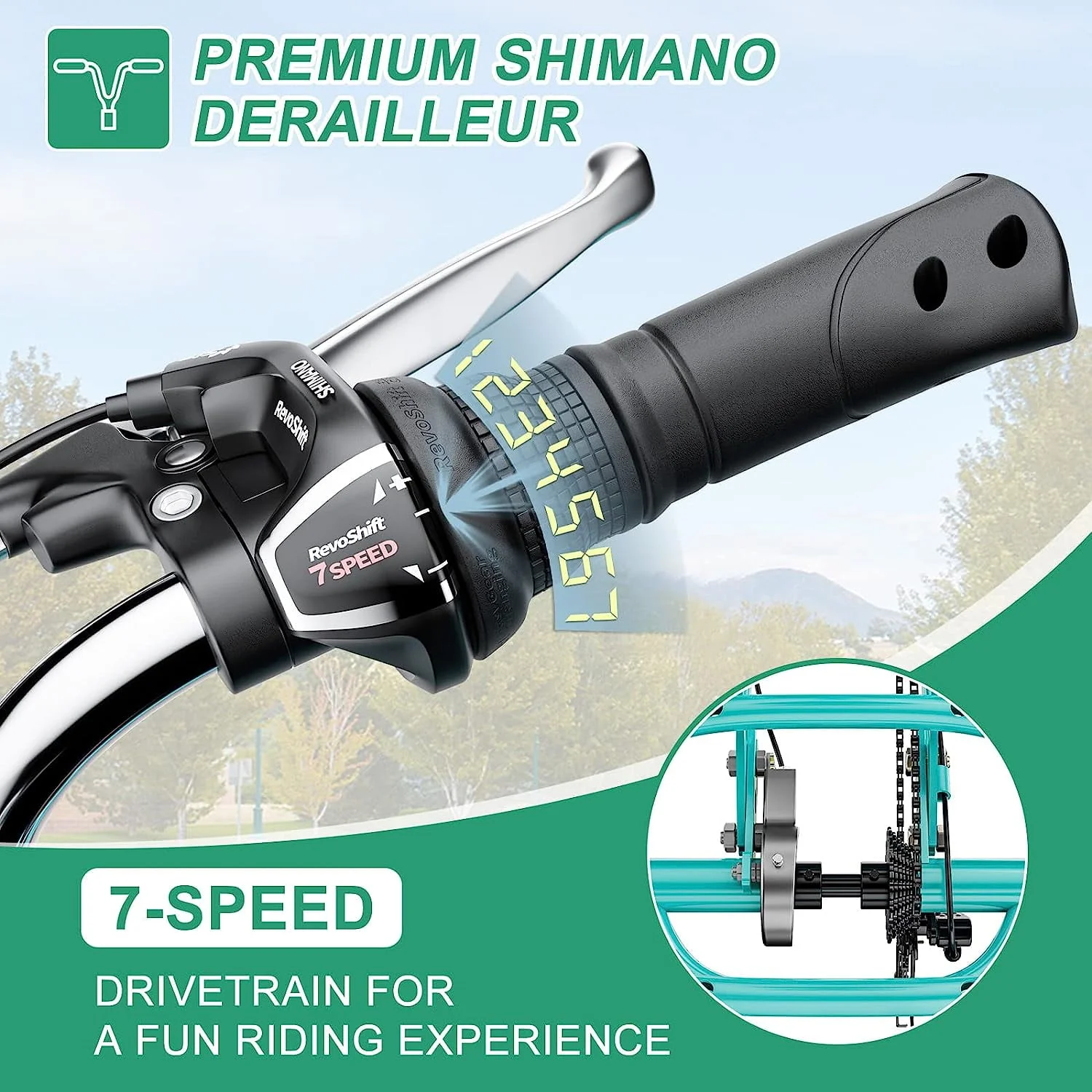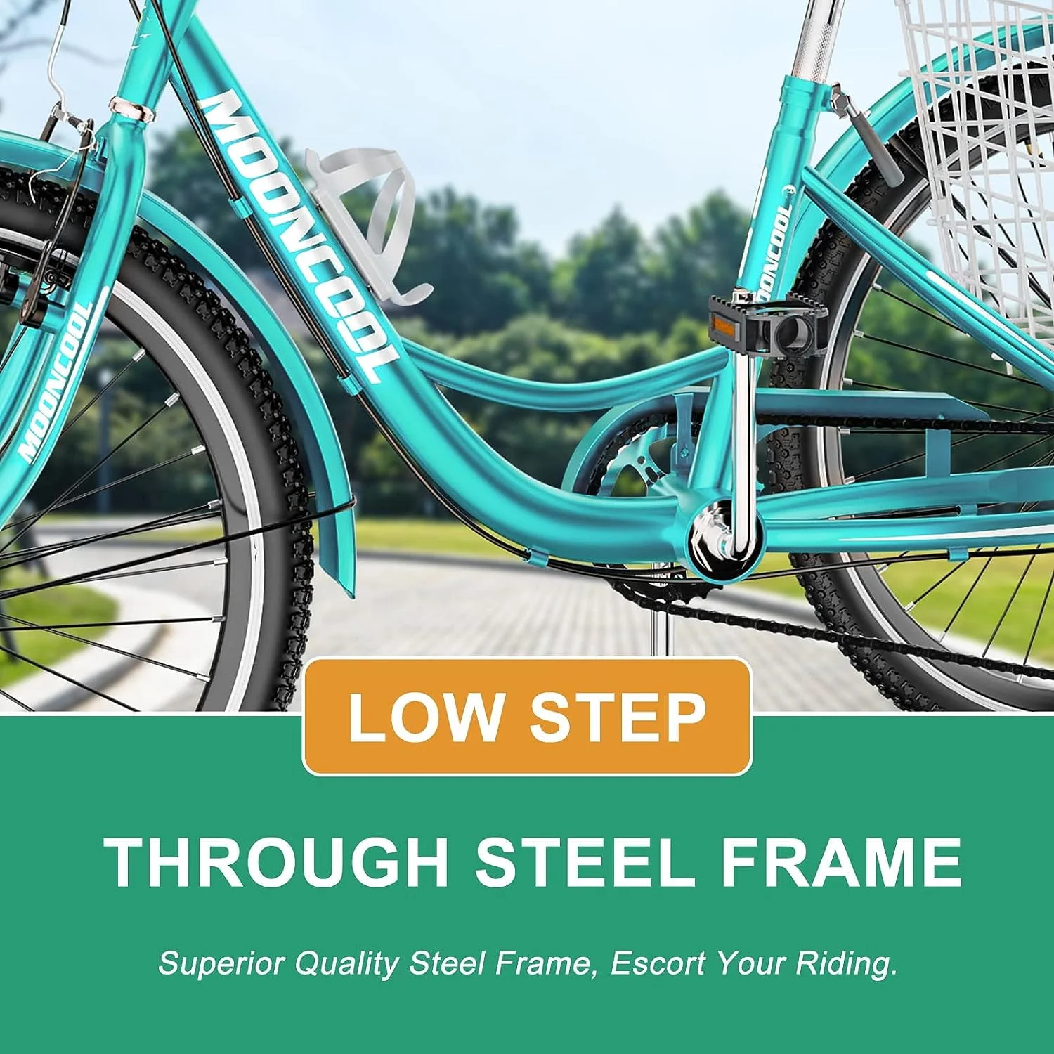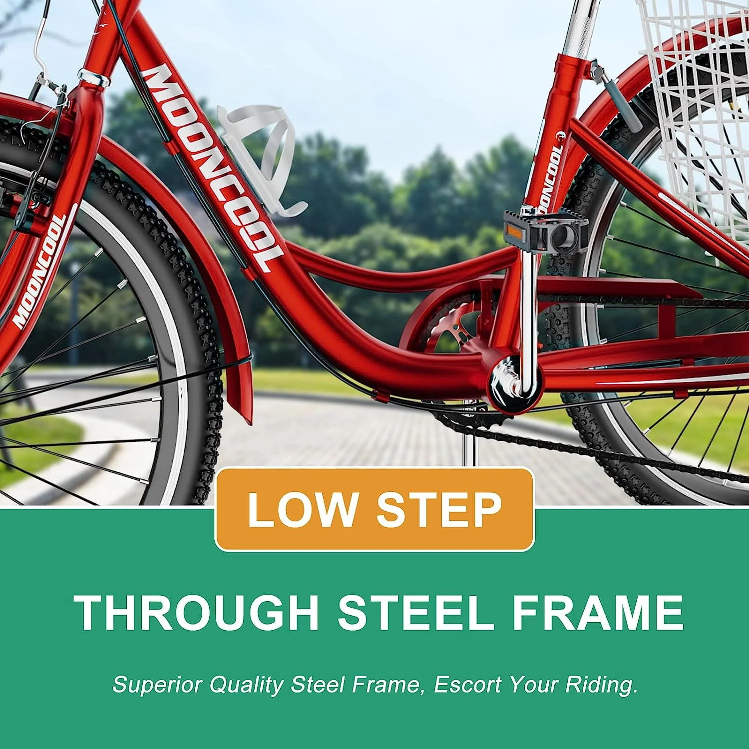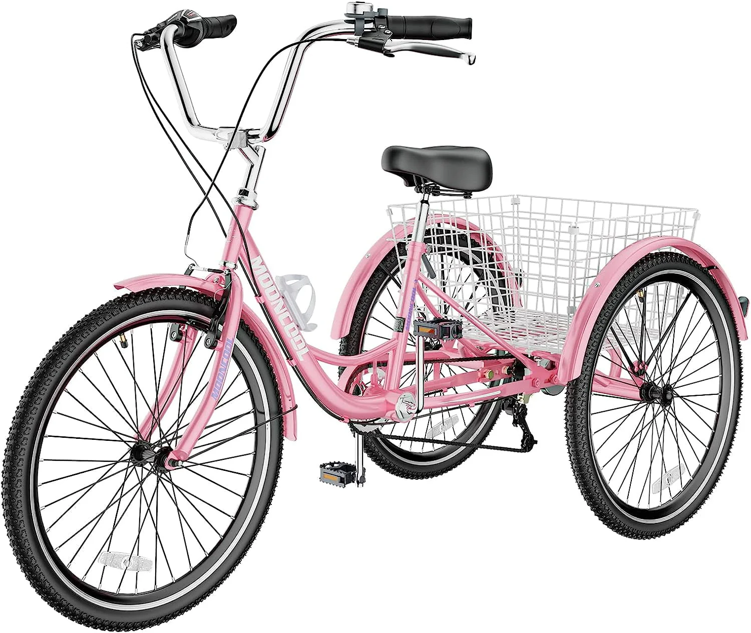 ABORON Adult Tricycles 7 Speed, Adult Trikes 24 inch 3 Wheel Bikes, Three-Wheeled Bicycles Cruise Trike with Shopping Basket for Seniors, Women, Men
