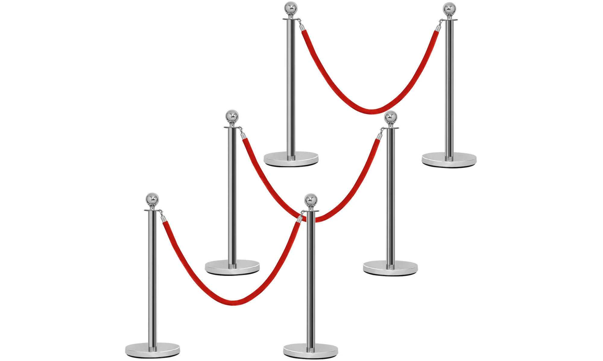 Costway 6pcs Stanchion Posts Queue Pole Retractable 3 Velvet Ropes Crowd Control Barrier - Avayadevconnect