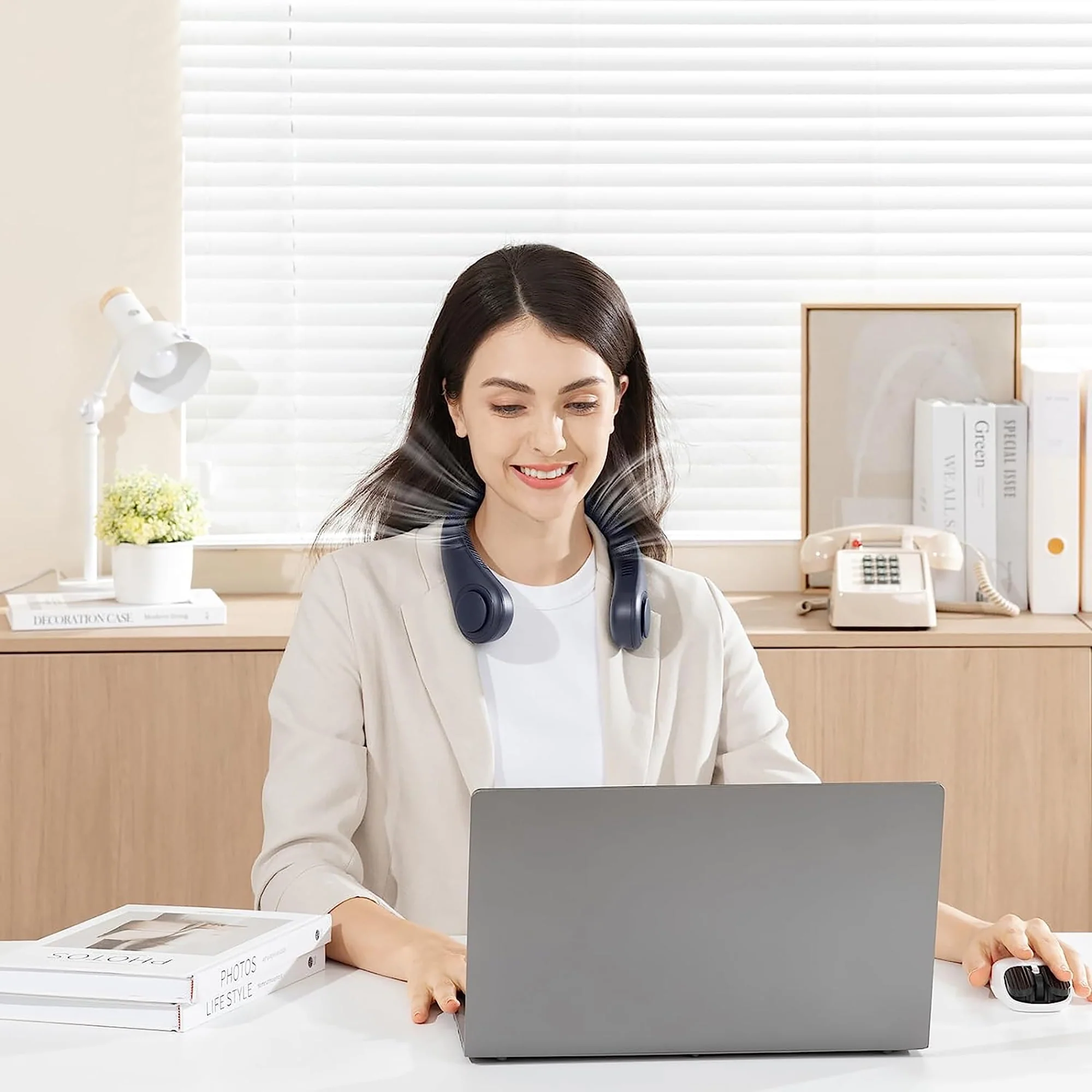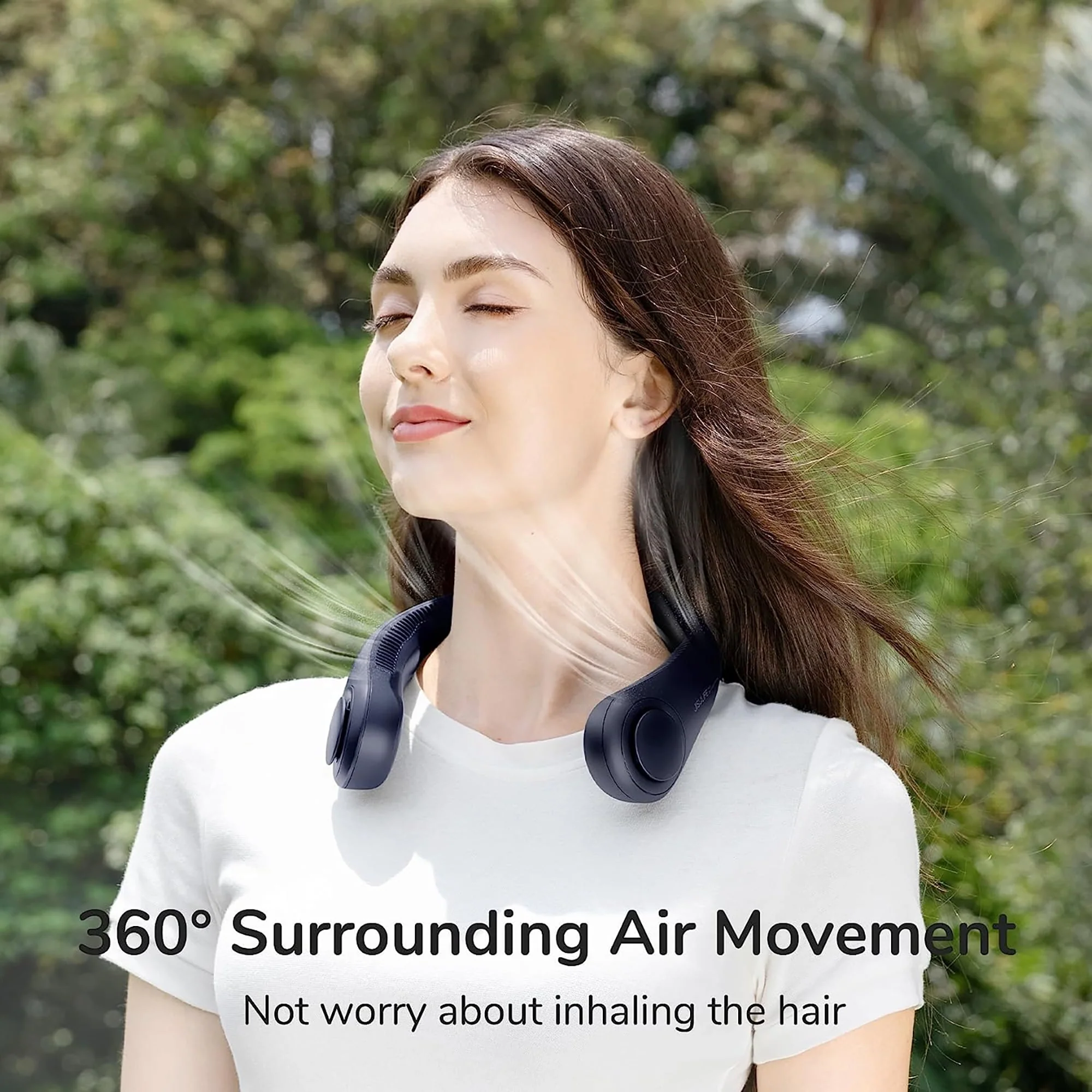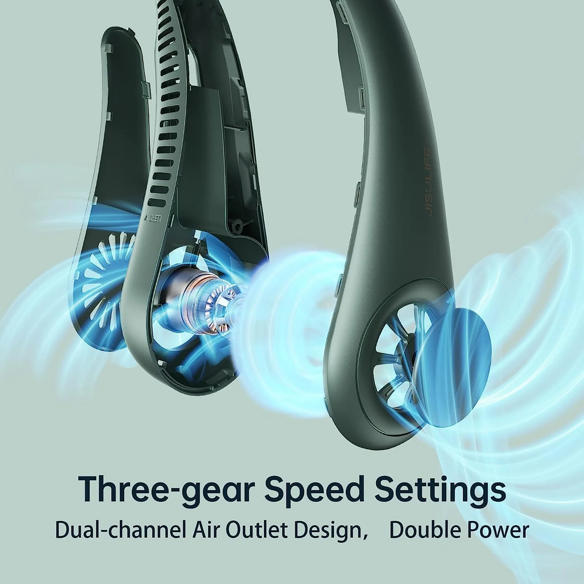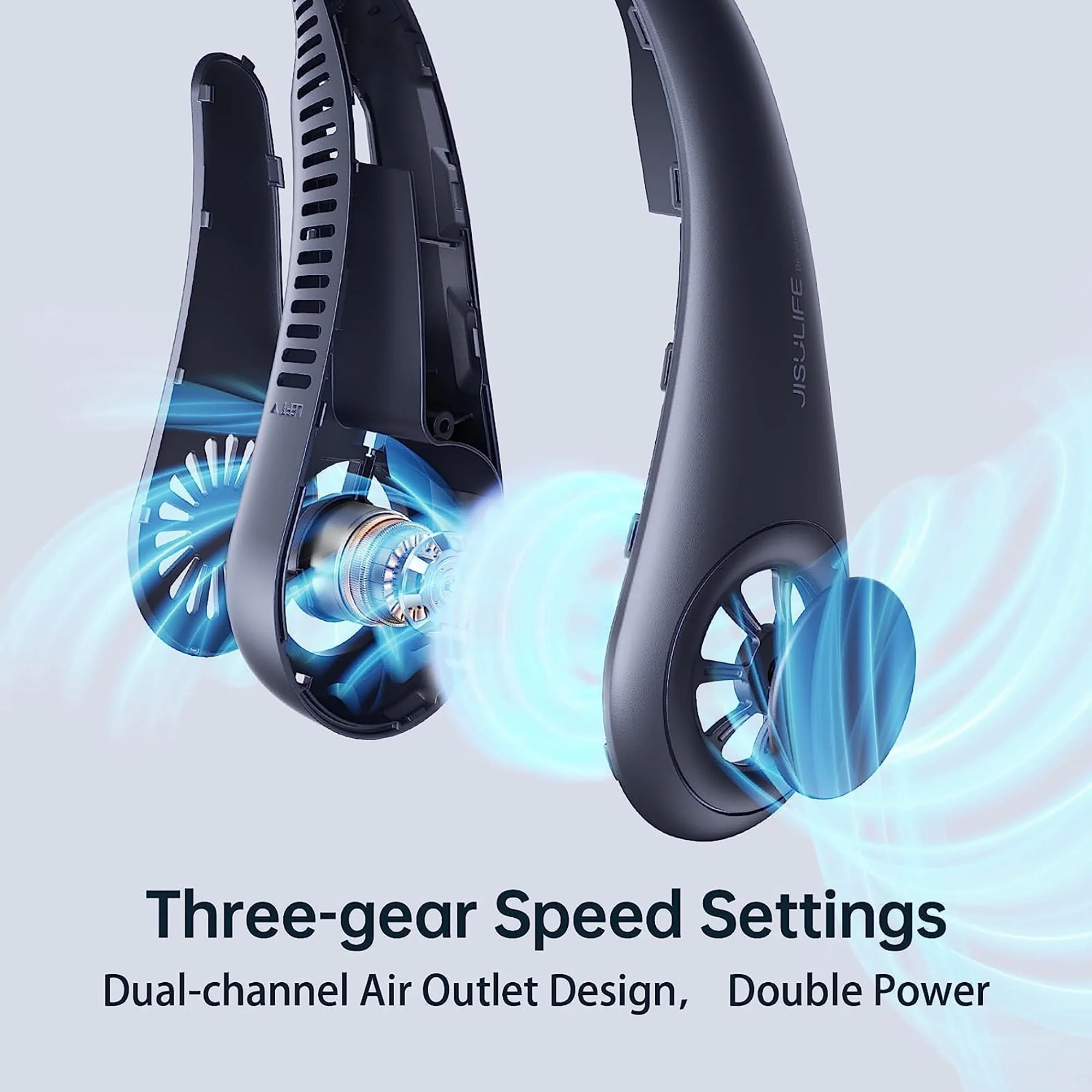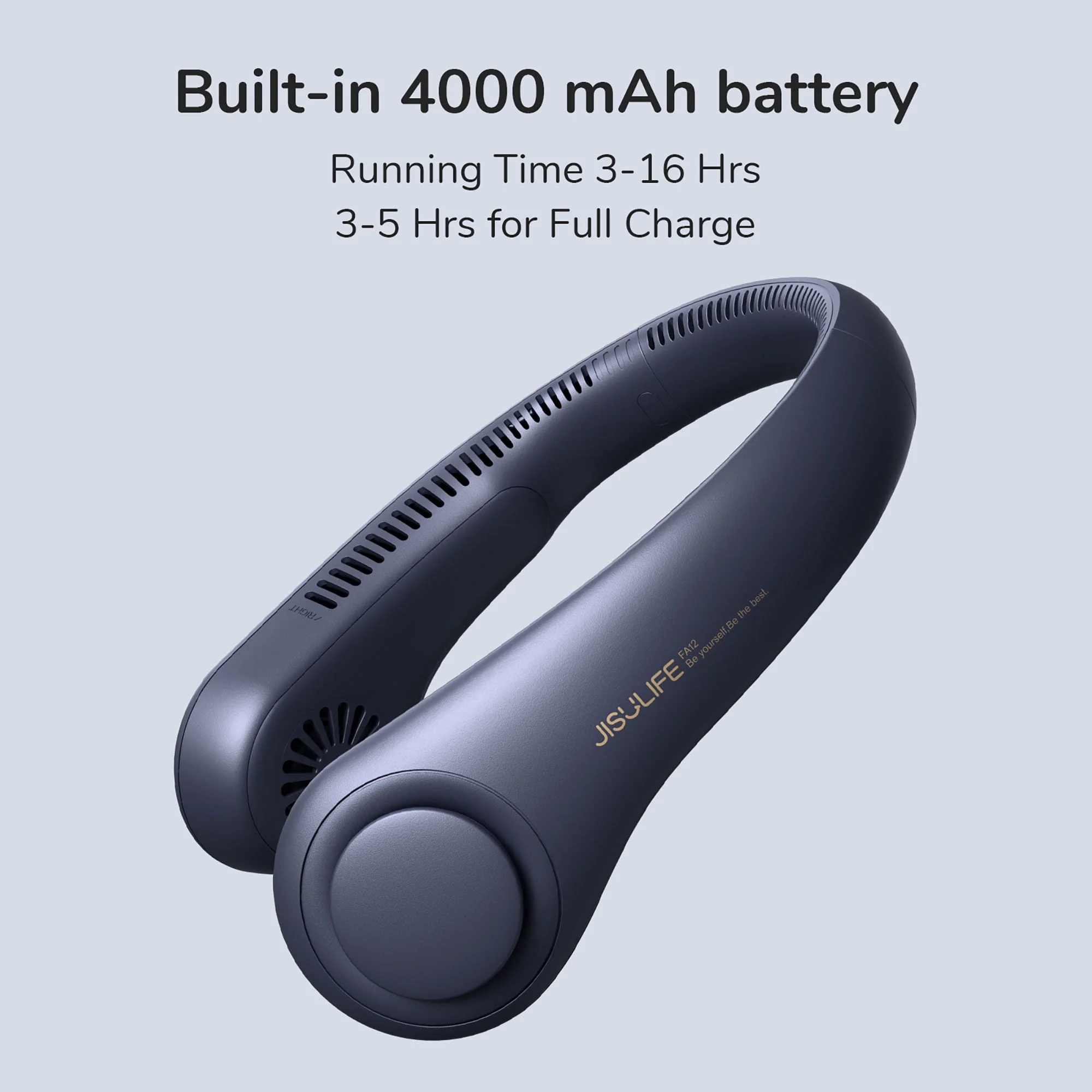 JISULIFE Portable Neck Fan, Wearable Personal Fan, 4000 mAh Battery Powered Bladeless Fan with 3 Speeds