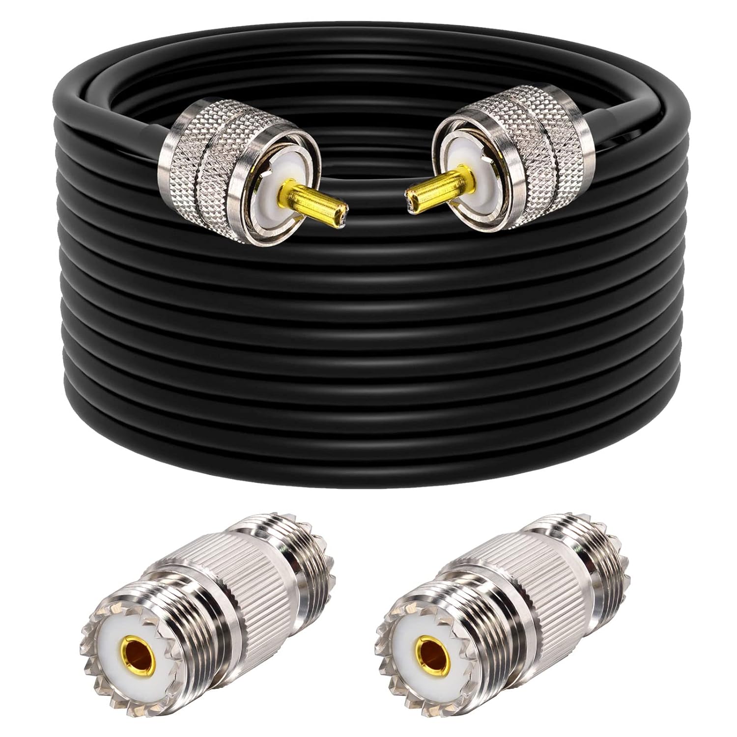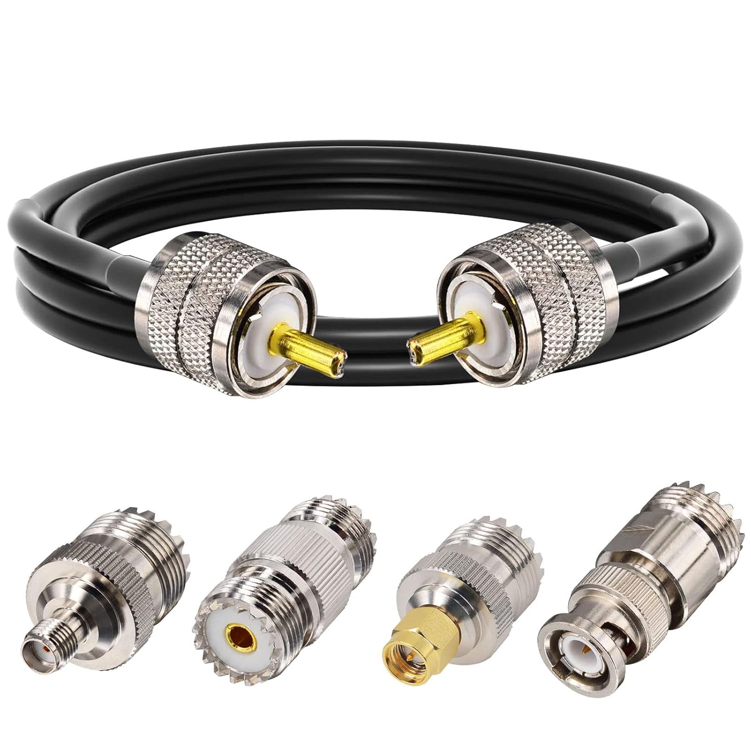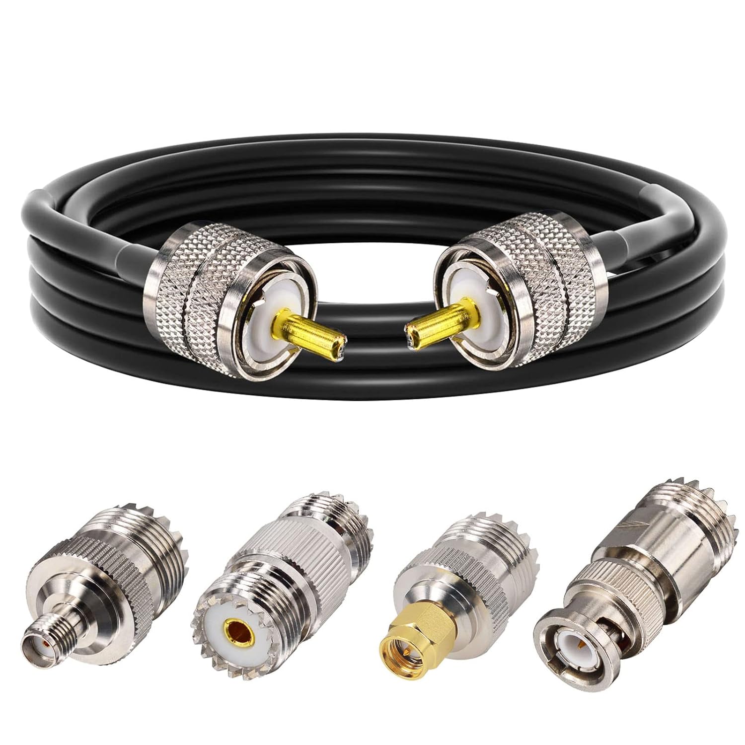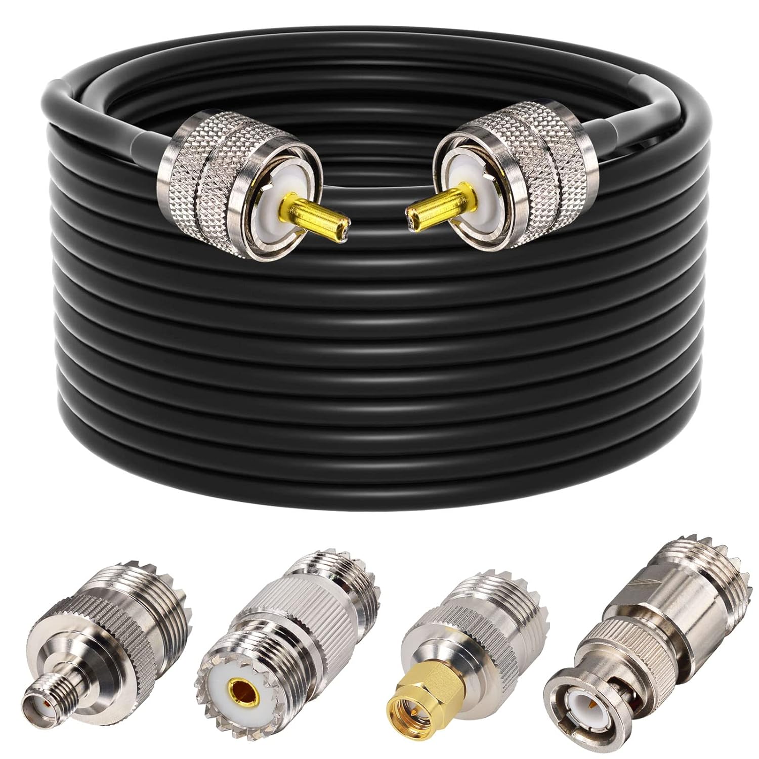CB Coax Cable,RG58 Coaxial Cable 49.2ft,UHF PL259 Male to Male Cable + UHF SO239 Female to SMA/UHF/BNC Adapter 4-Pack for CB Radio Antenna,Ham Radio,SWR Meter,HF Radio,Amateur Radio
