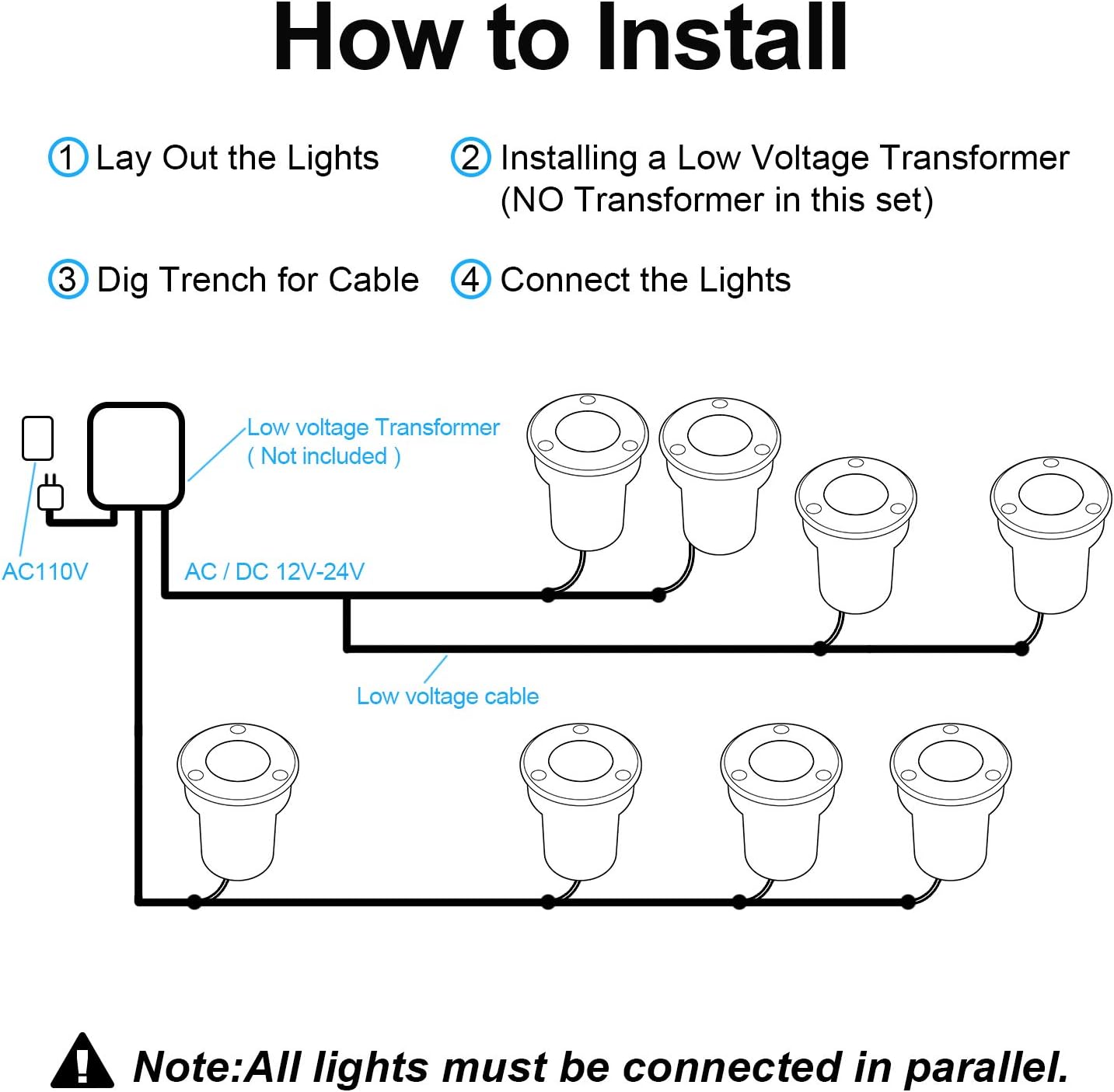 LEDVIE LED Landscape Lights, 12 Pack 7W LED Ground Lights with 24 Connectors Low Voltage In Ground Well Lights Pathway Lights Warm White, Waterproof Landscape Lighting for Driveway, Deck, Step, Garden