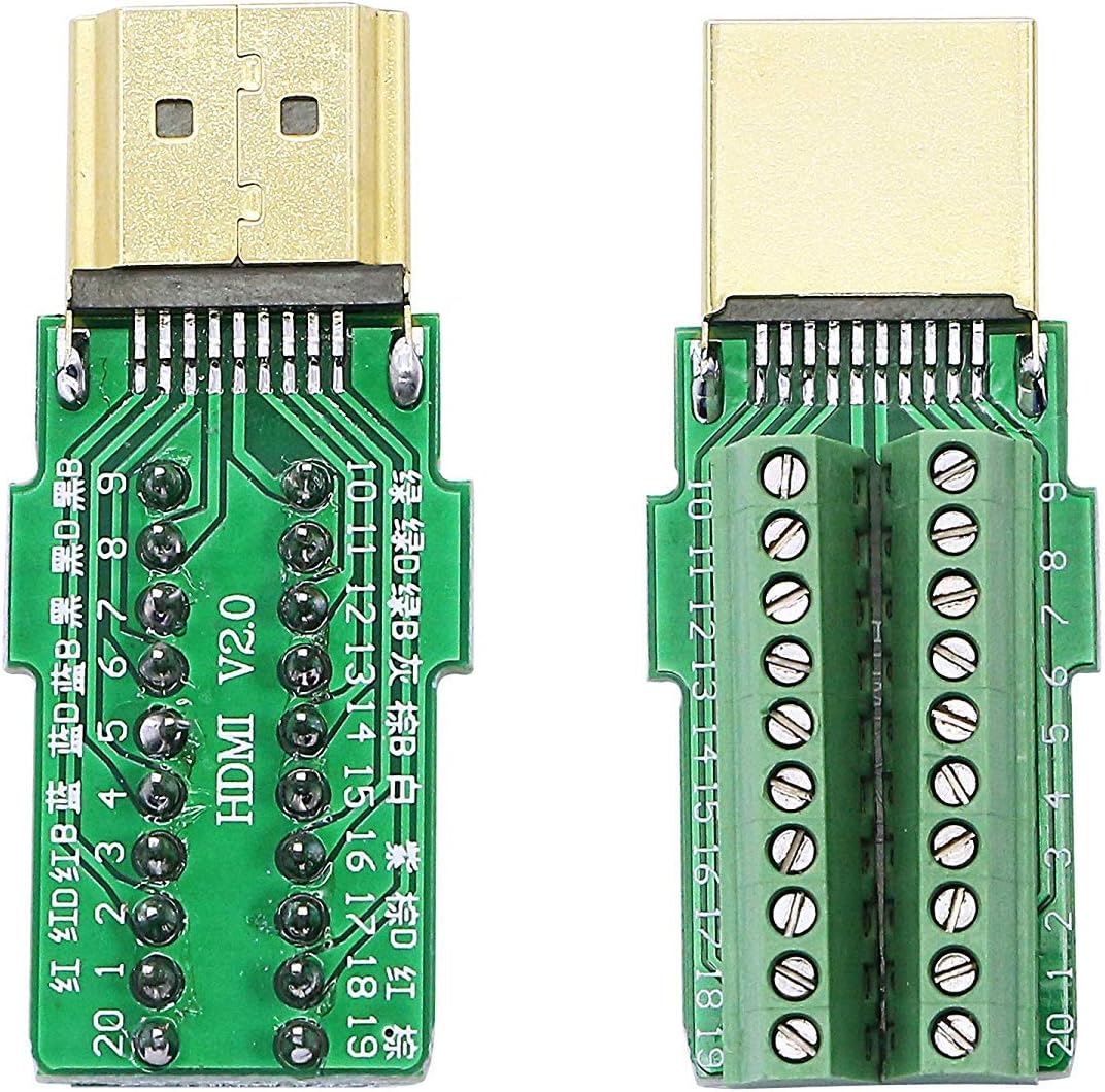SinLoon 2 Pack HDMI Solderless Adapter Gold Plated HDMI Extension Cable Connector Signals Terminal Breakout Board Free Welding Connector with Plastic Cover Screwdriver