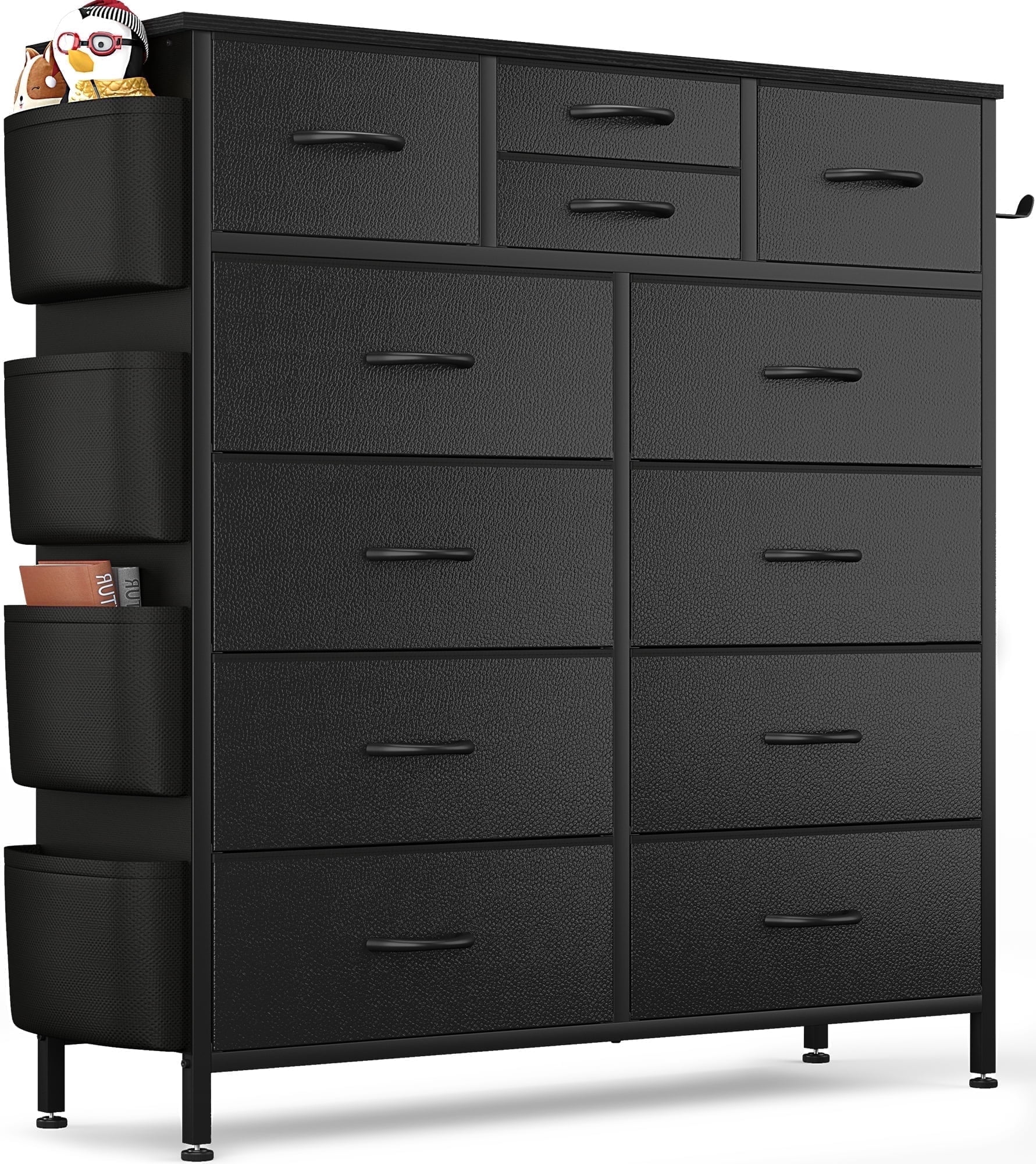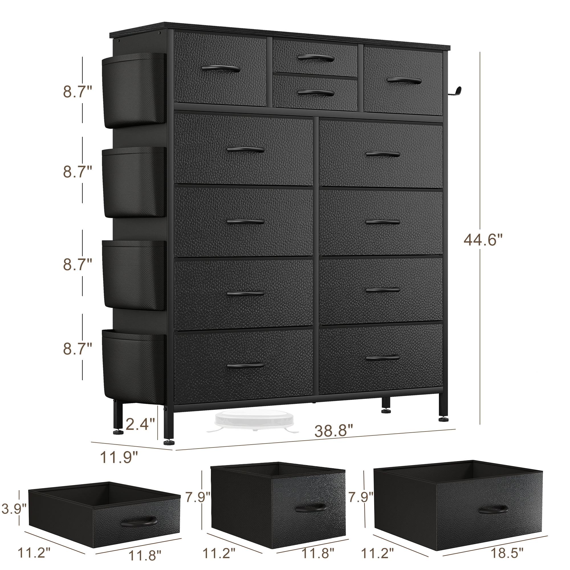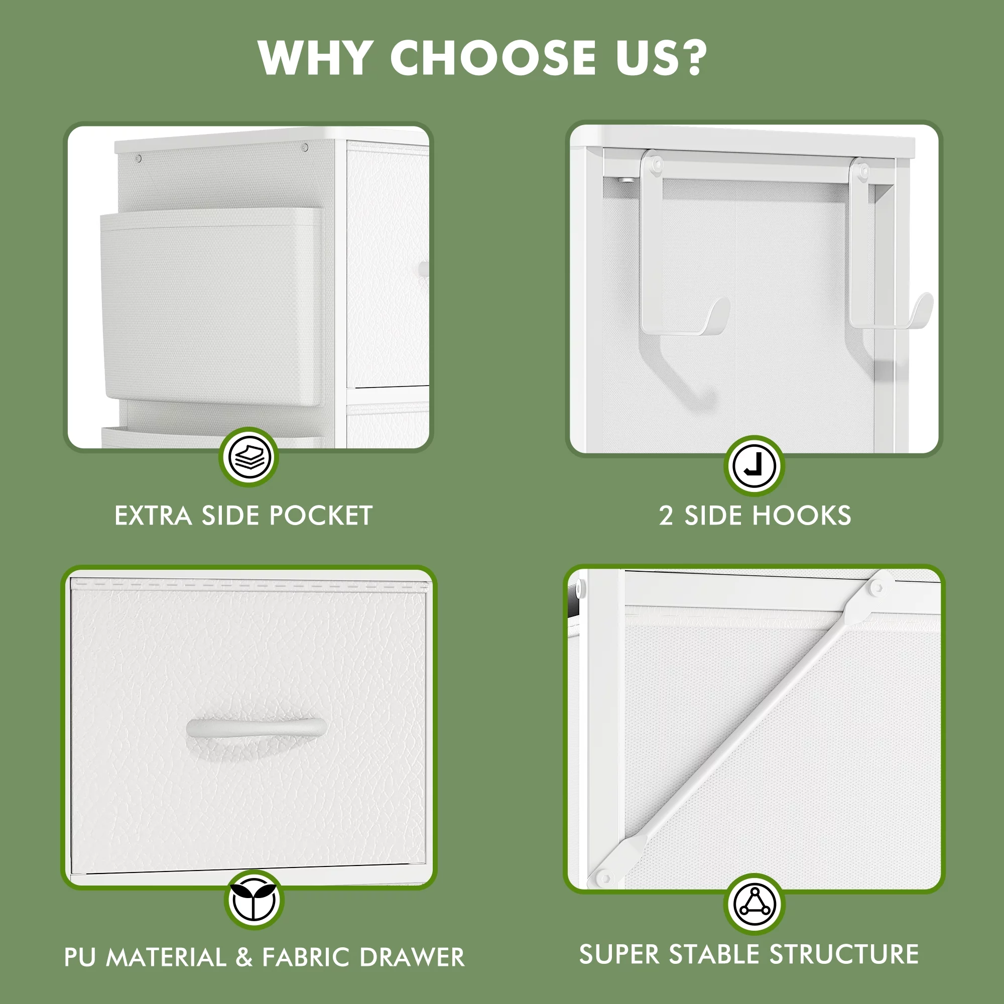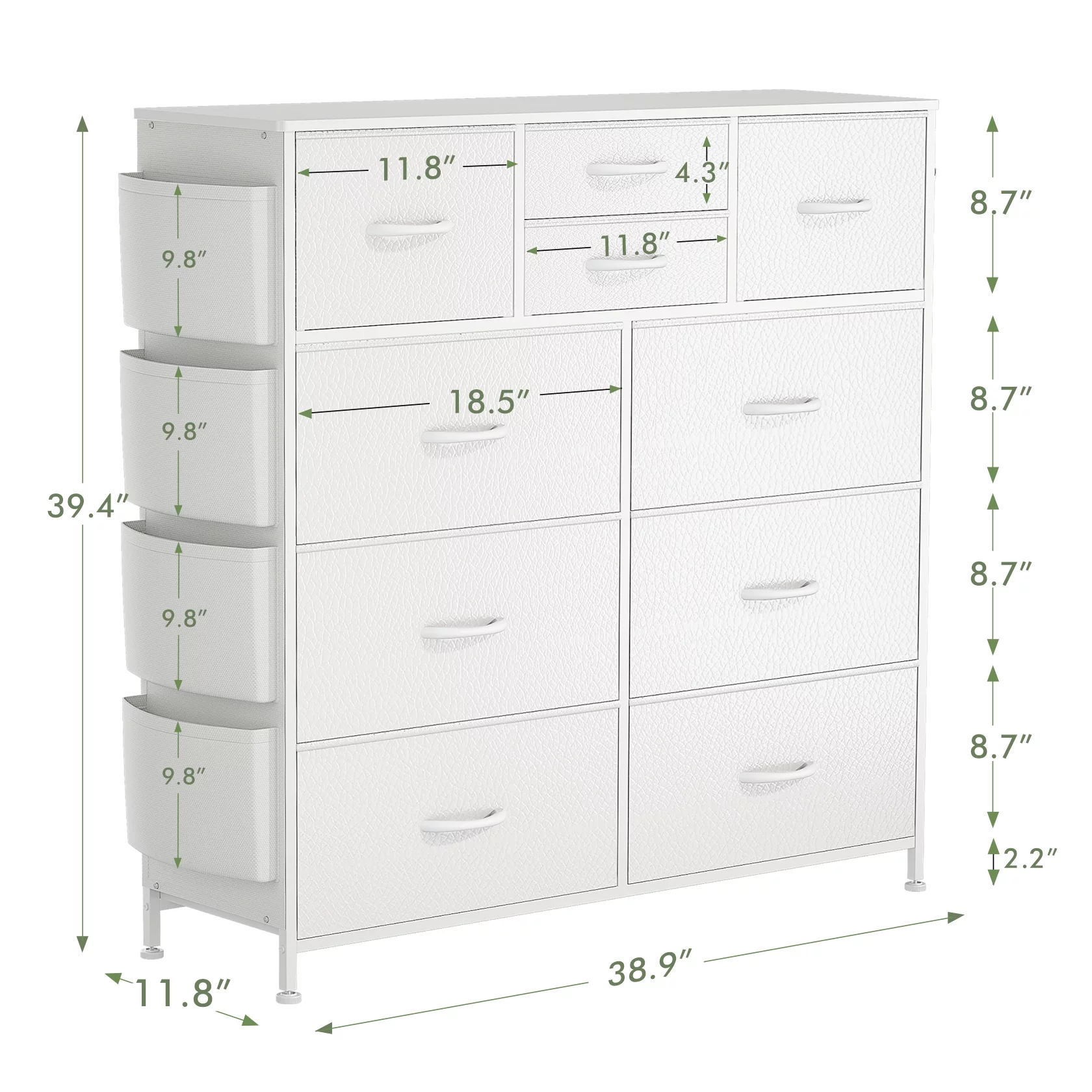 GIKPAL 10 Drawer Dresser, White Dresser Chest of Drawers Dressers for Bedroom Modern PU&Fabric Dresser Tall Dresser with Side Pockets and Hooks, White