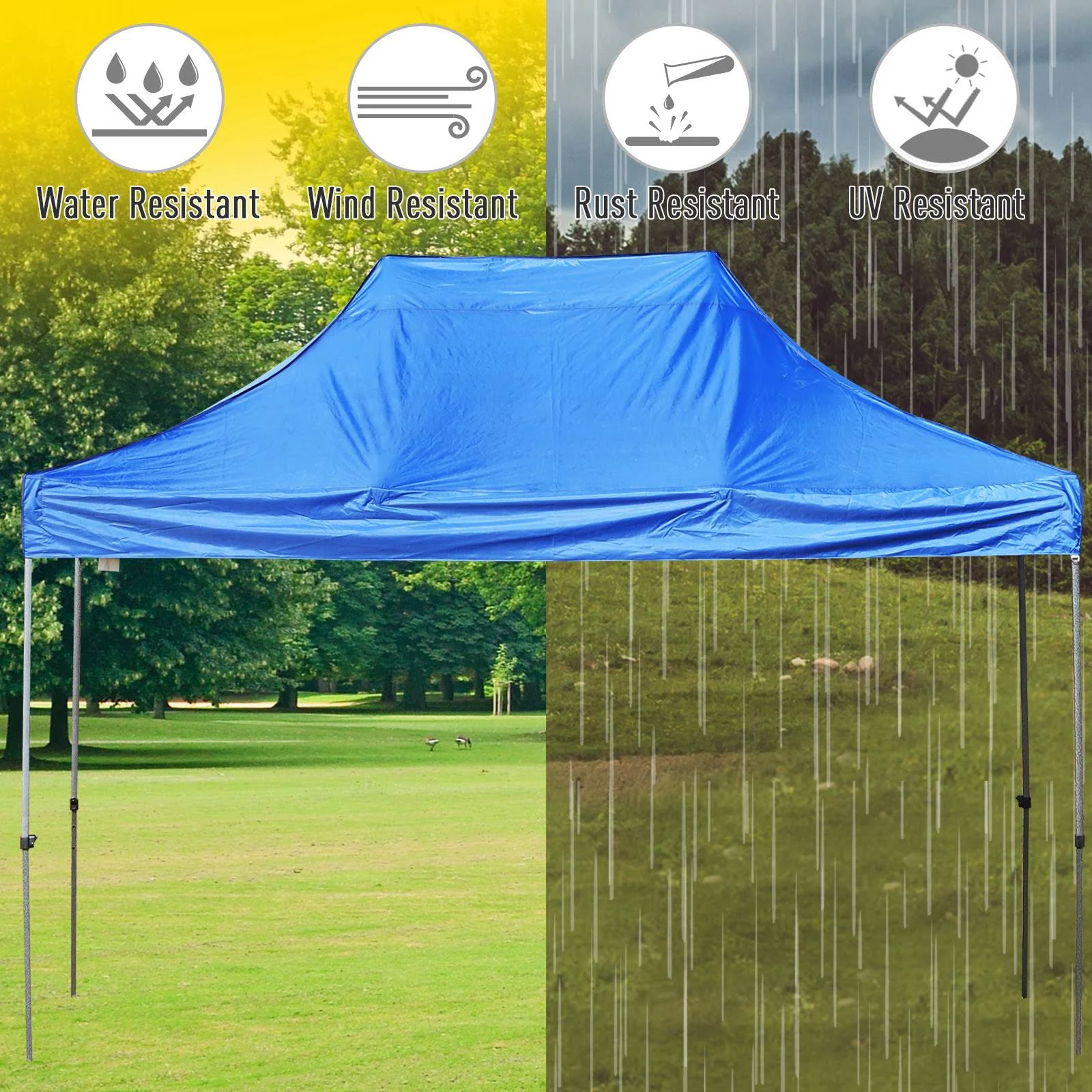 Outsunny 9.7& x 14.5& Folding Gazebo Steel Canopy Party Tent with Carry Bag - Blue