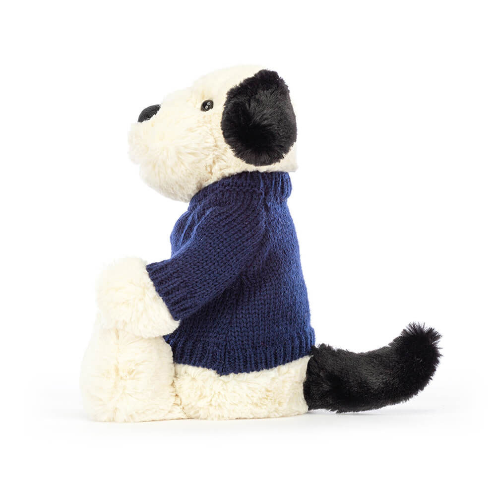 Bashful Black & Cream Puppy with Personalized Navy Jumper