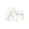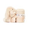 Bashful Luxe Bunny Willow Soother is irresistible to touch in our softest latte hued fur. A timeless newborn gift, this lop-eared bunny holds our finest soother: a sumptuous cloud for newborns to doze with. Crafted with stitched eyes and gold thread nose, this soothing bunny is ready to gift in a satin sheen gift box with gold foil detail and matching gift card.