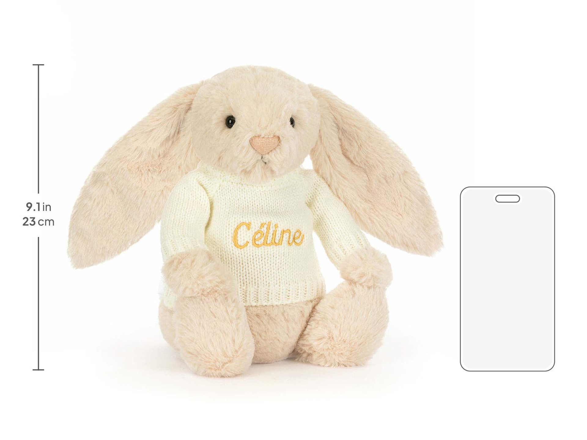 Bashful Luxe Bunny Willow is a super soft beloved Jellycat and can now be made extra special with a personalized cream jumper! With a choice of fonts and thread colors, your bunny can truly be one of a kind!