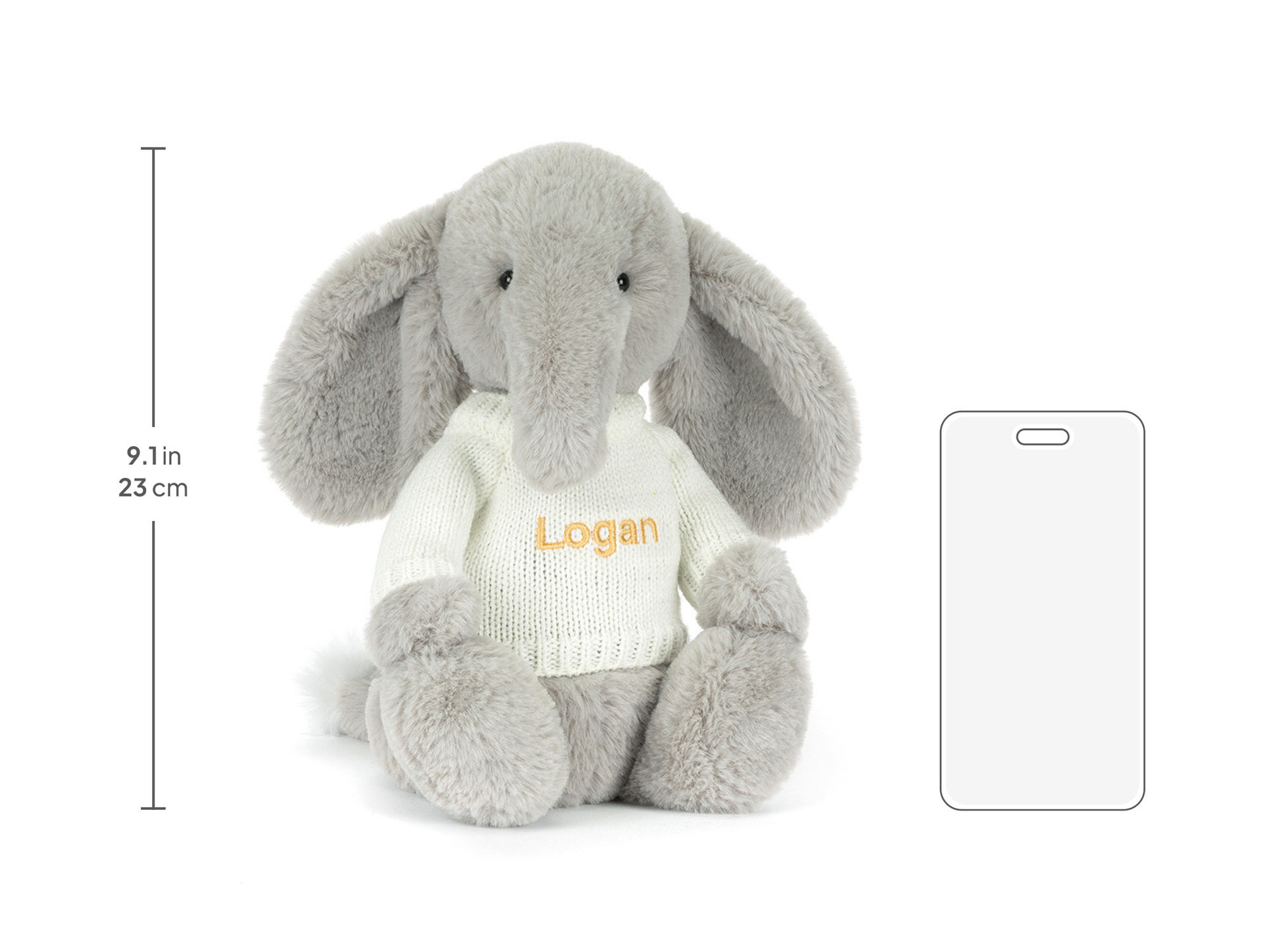 Bashful Luxe Elephant Thuddeus is a luxuriously soft beloved Jellycat and can now be made extra special with a personalized cream jumper! With a choice of fonts and thread colors, your elephant can truly be one of a kind!