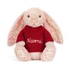 Blossom Blush Bunny ‘Cherry’ is a super soft beloved Jellycat and can now be made extra special with a personalized red jumper! With a choice of fonts and thread colors, your bunny can truly be one of a kind!