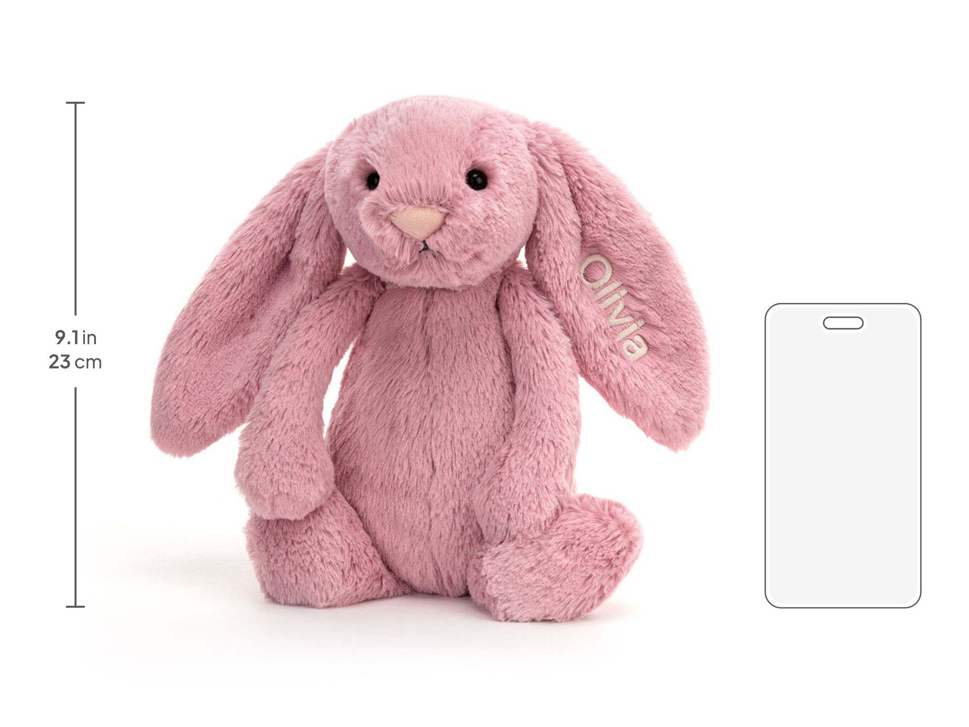 Bashful Tulip Bunny is the sweetest little bobtail in soft tulip pink fur, with a sweet pink nose and long ears you can embroider with a special message. With a choice of fonts and thread colors, you can share joy with a truly unique Bashful Tulip Bunny.